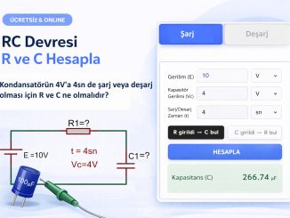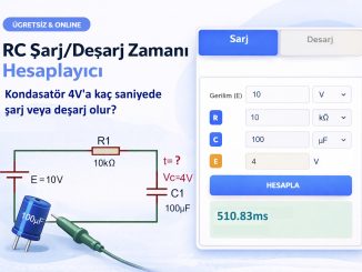 RC devresi hesaplayıcısı ile kondansatörün istediğiniz voltaja kaç saniyede şarj veya deşarj olduğunu kolayca hesaplayın. R, C ve hedef voltaj girin, süreyi anında görün.